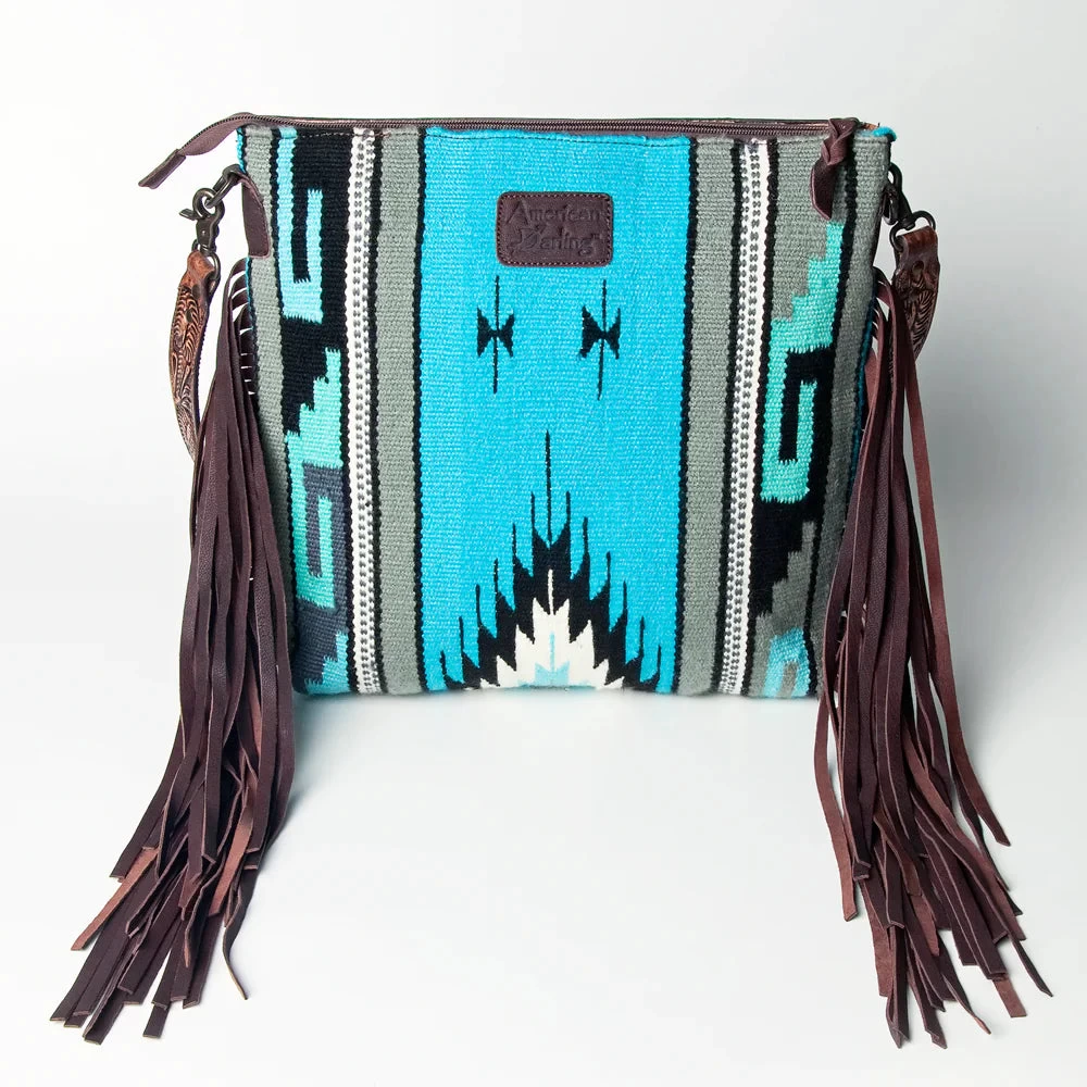 Just look at the beautiful colors in this blanket and tooled leather bag. The dark tooled top really adds to the purse!!