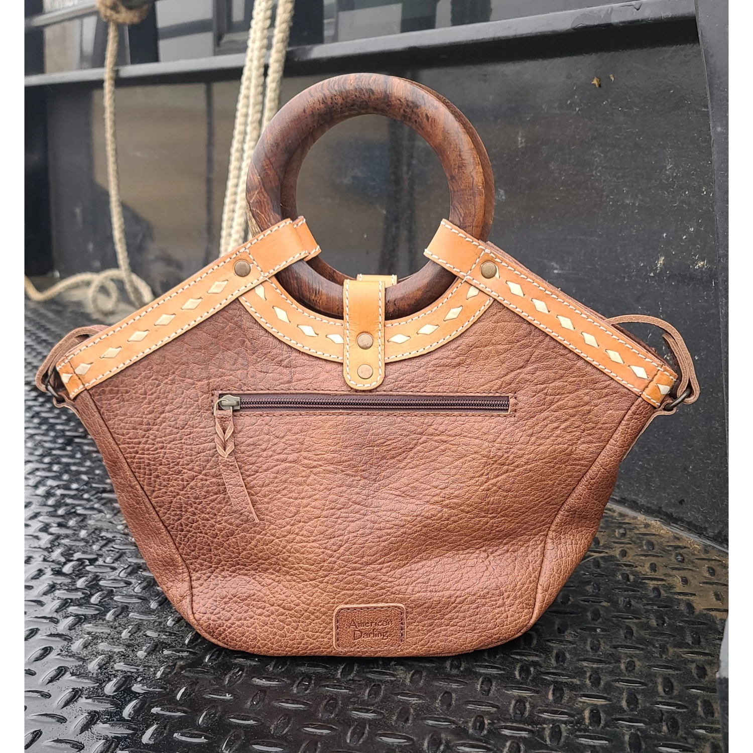 How cute is this retro style handbag by American Darling. We just love the wood handles and you can wear this as a cross body as well. There are leather straps with this bag so you can choose your style.Â