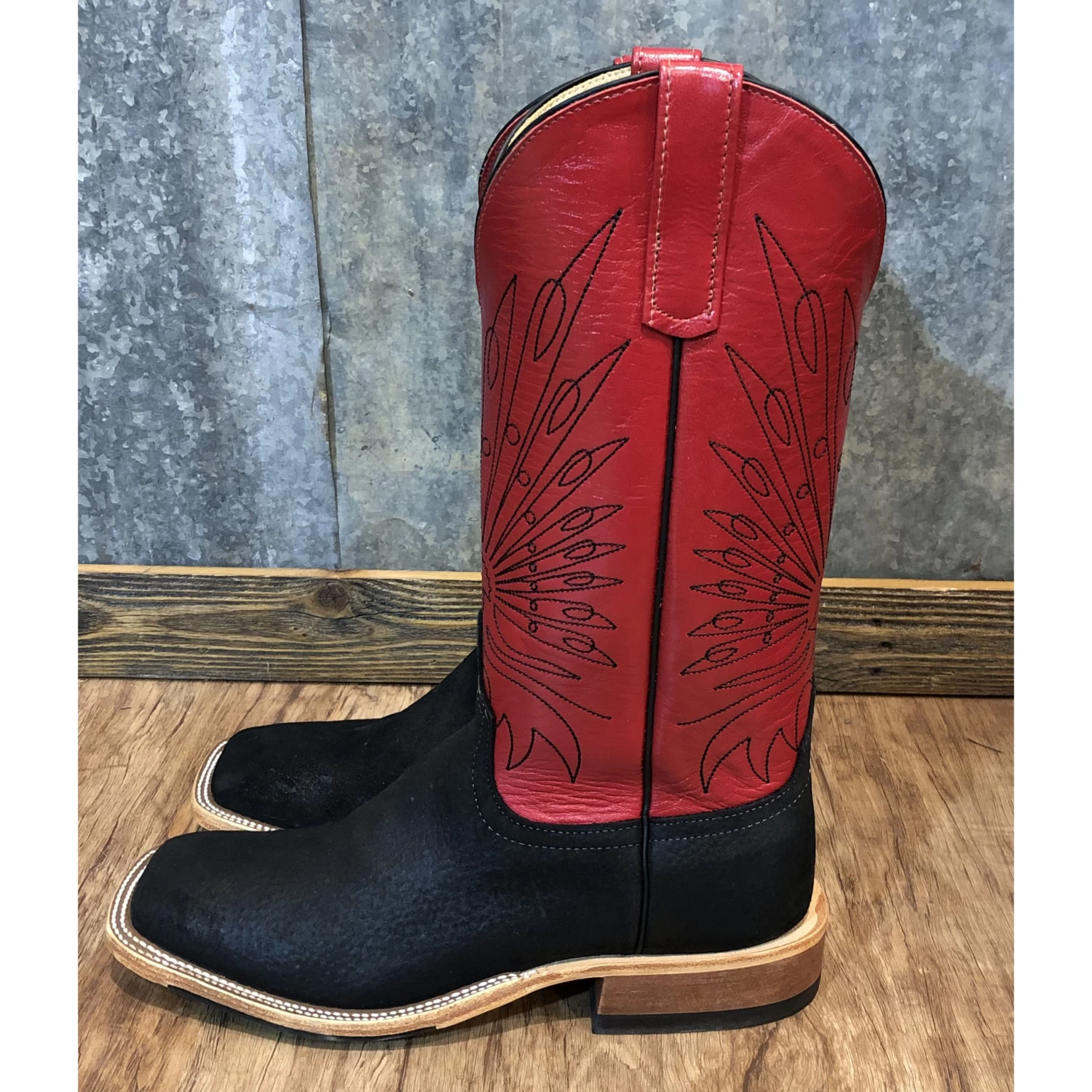 Check out these beautiful black Boar hide Anderson Bean Boots! Seriously these boots are knock outs! The stunning red top has a fun and sharp peacock stitch pattern. Made to last and still look good!Â