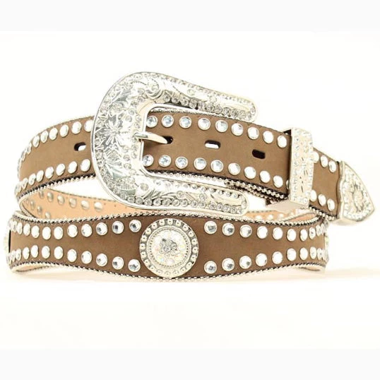 This women’s belt from Blazin Roxx features a scalloped design with rhinestones and conchos throughout!Â