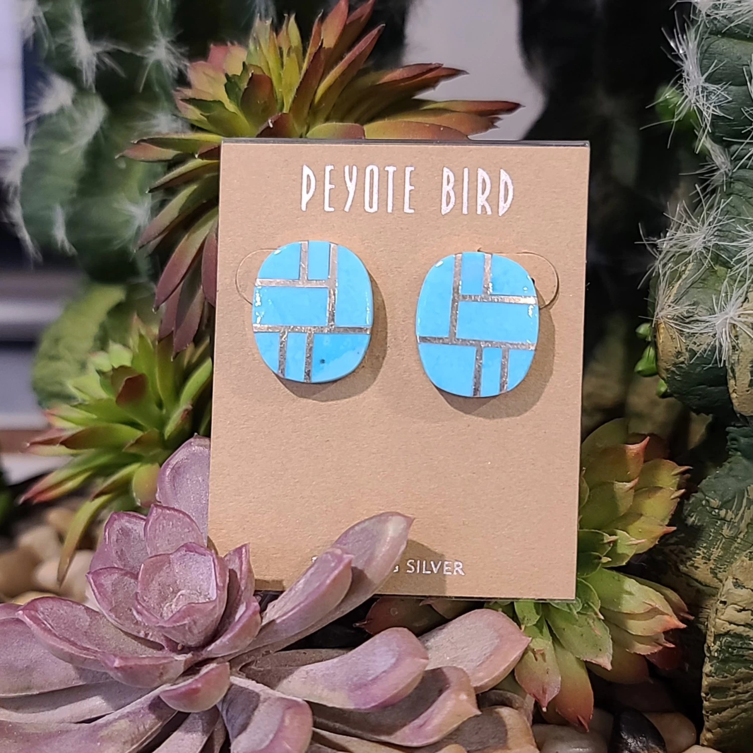 These are a very unique pair of turquoise inlay studs. These will be a perfect pair to dress up any outfit.Â
