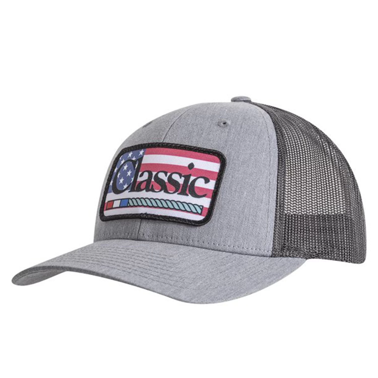Step out in style with this Classic Rope Company cap that features the large logo and rope on an American flag patch. In addition to a snap back closure and a mesh back, this cap is medium/large and adjustable.