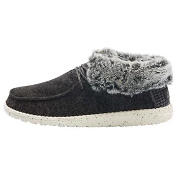 Check these out! They finally are here. These are the black high top shoes with the fur lining inside. They for sure will keep your feet warm on those cold/chilly nights. If you wear a half size, we suggest choosing the next up.Â
