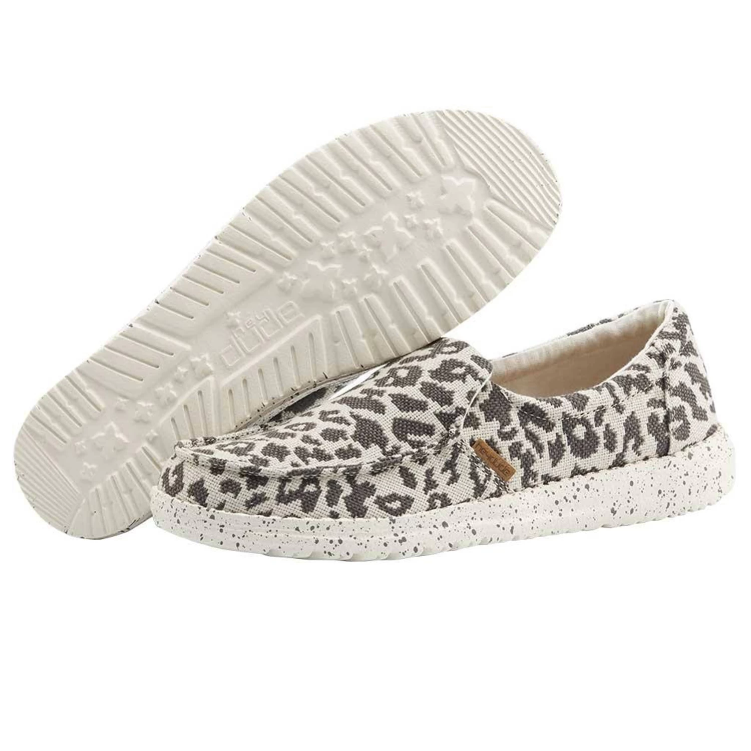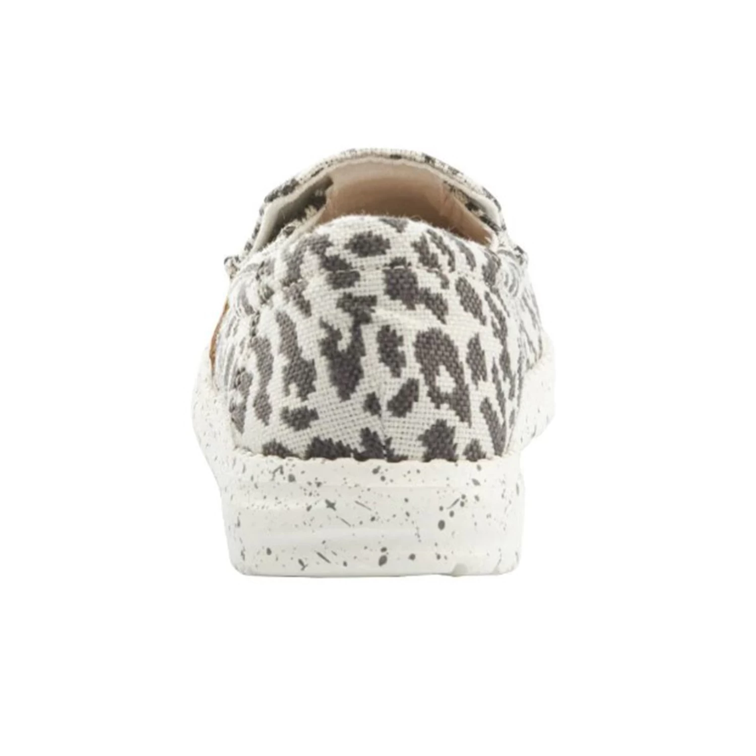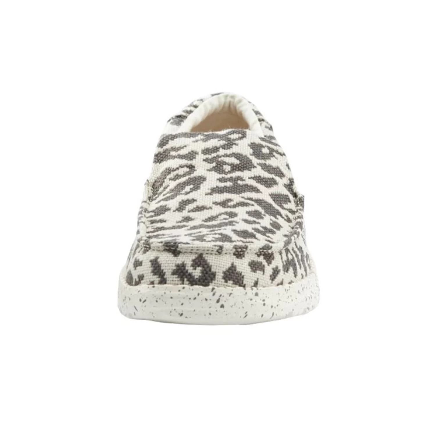 These women’s Hey Dude slip on shoes feature a grey cheetah print throughout! Hey Dude shoes are very comfortable and light weight!