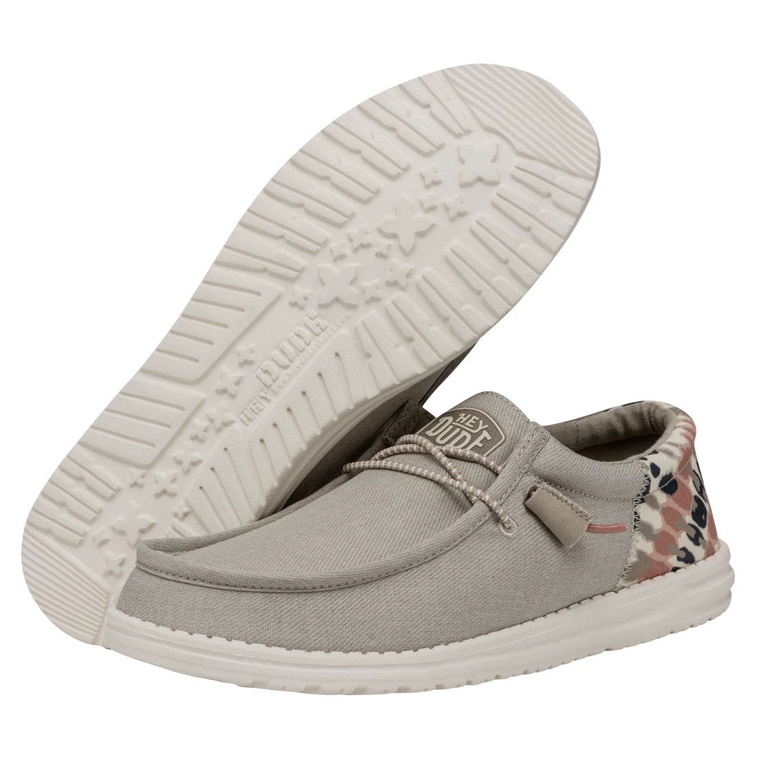 These fun Hey Dudes are all business in the front and party in the back. Featuring a heavier, more durable woven upper, this Wally is made to keep up, finished off with an ultralight outsole with no-tie, elastic laces and a cushioned ankle collar.