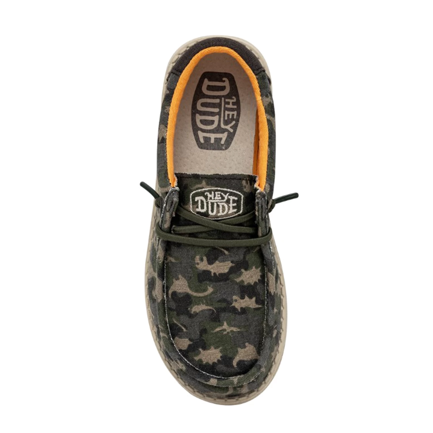 It’s Camo-saurus Rex, otherwise known as the Wally Youth Camodino. The cotton-canvas upper keeps feet cool and airy throughout, but stands up to recess and a machine wash. Finished off on an ultralight outsole with no-tie, elastic laces and an extra-cushy foot bed, perfect for playtime, prehistoric-style.