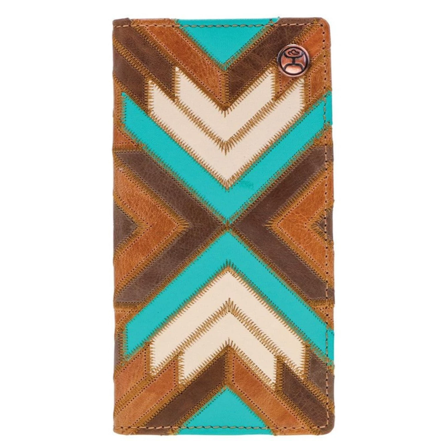 This Hooey Rodeo wallet features patchwork with turquoise accents and includes our custom hooey brand woven logo liner.Â