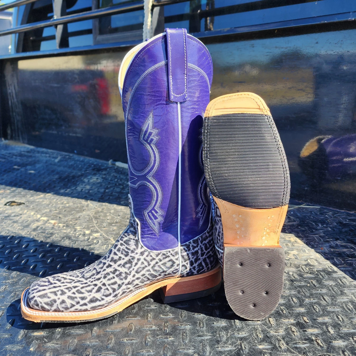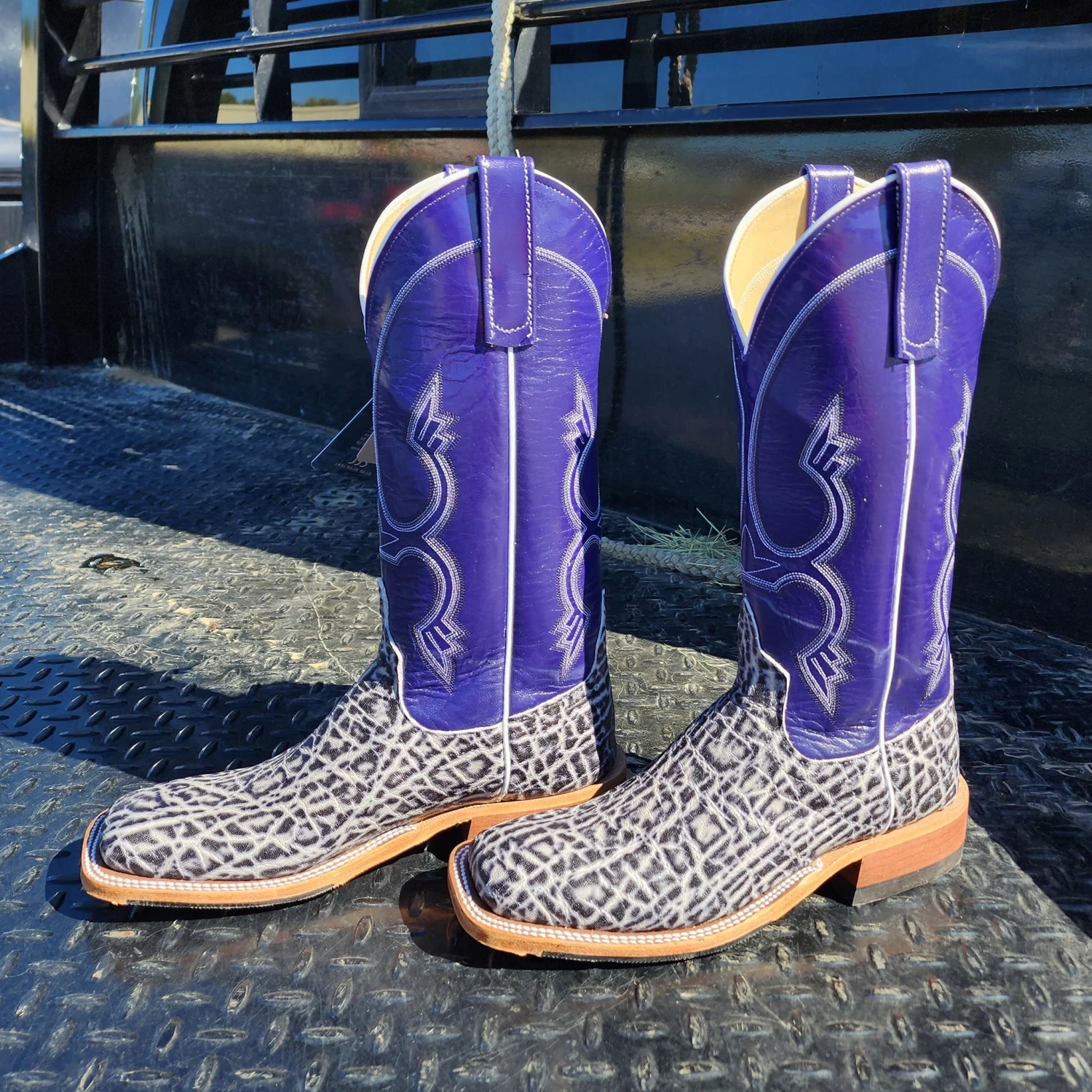 These beautiful black & white elephant boots have so much style and durability. From the arena to the office these are a great choice.Â