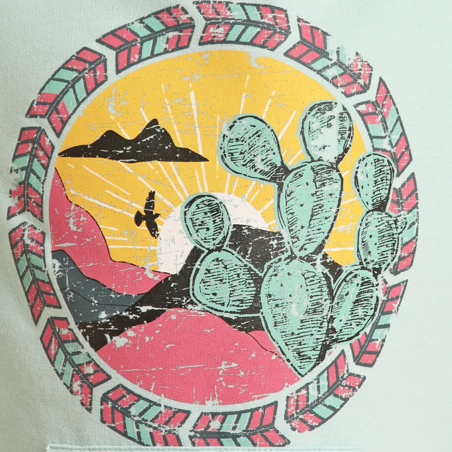 The perfect hoodie for your lil’ cowgirl. A pretty light turquoise featuring a southwest cactus design.Â