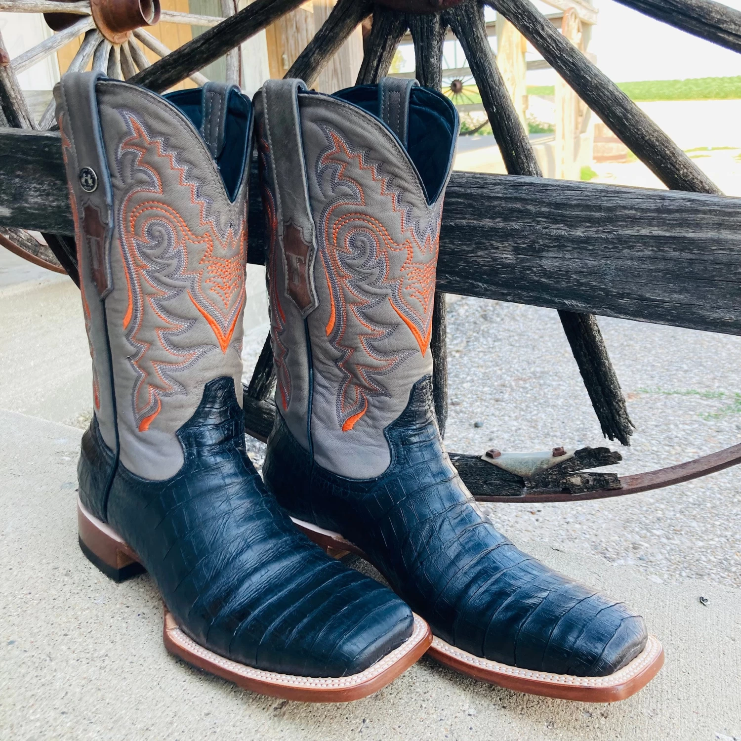 How sharp are these black caiman belly Tanner Marks! These boots would be perfect for weddings or any nice occasion!Β These boots are a square toe, with a hybrid sole. They feature comfort cushion insoles for the upmost comfort while taking on the day.Β