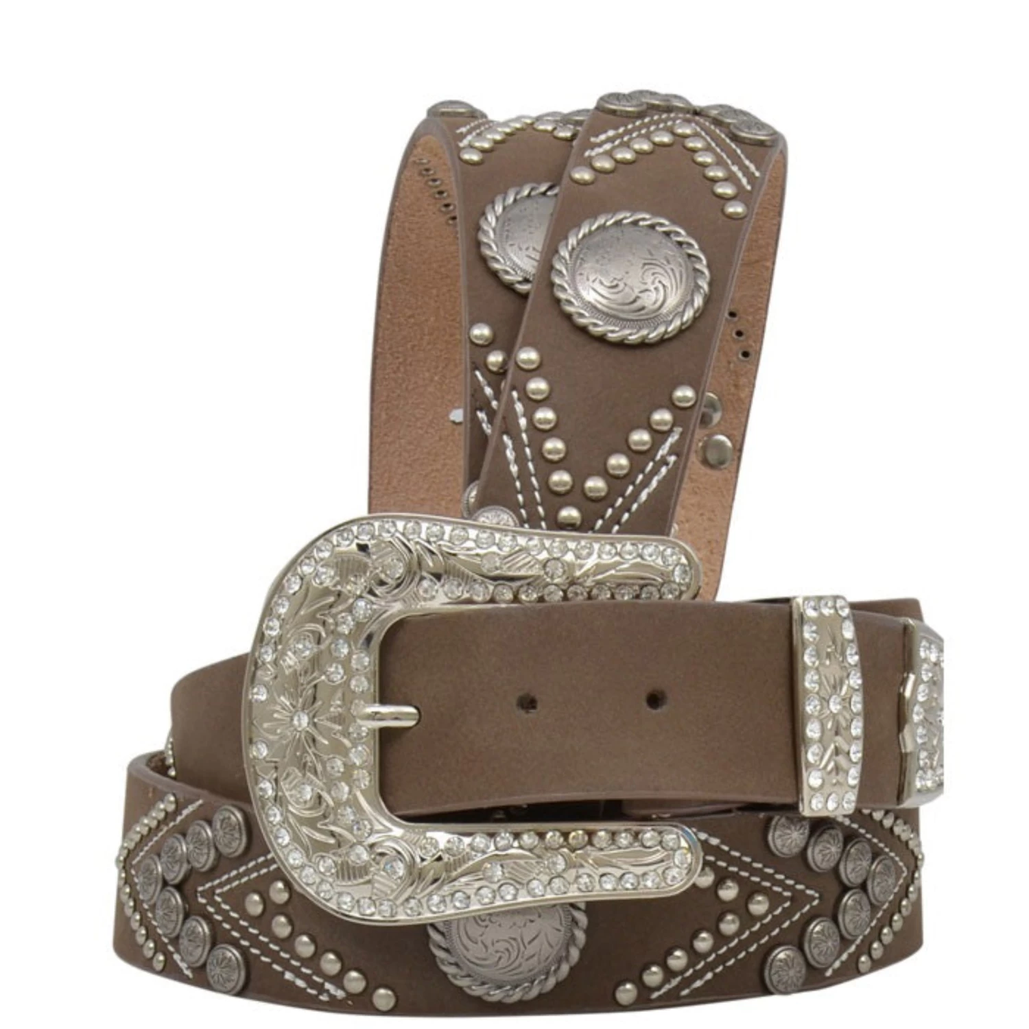 This women’s belt from 3D Belt Company features studs in an arrow pattern with conchos placed strategically throughout!