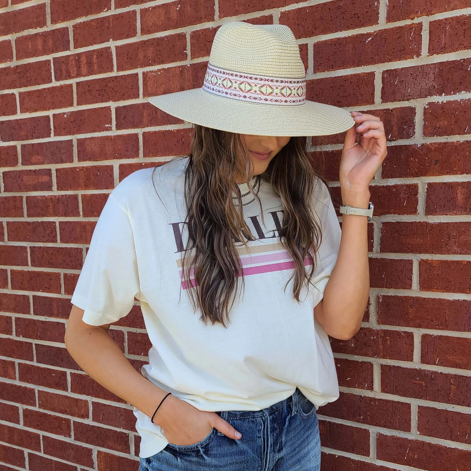This light weight summer has has a fun summer look that will look cute with many different outfits. From the beach to a picnic this had will be a go to for you.Â
