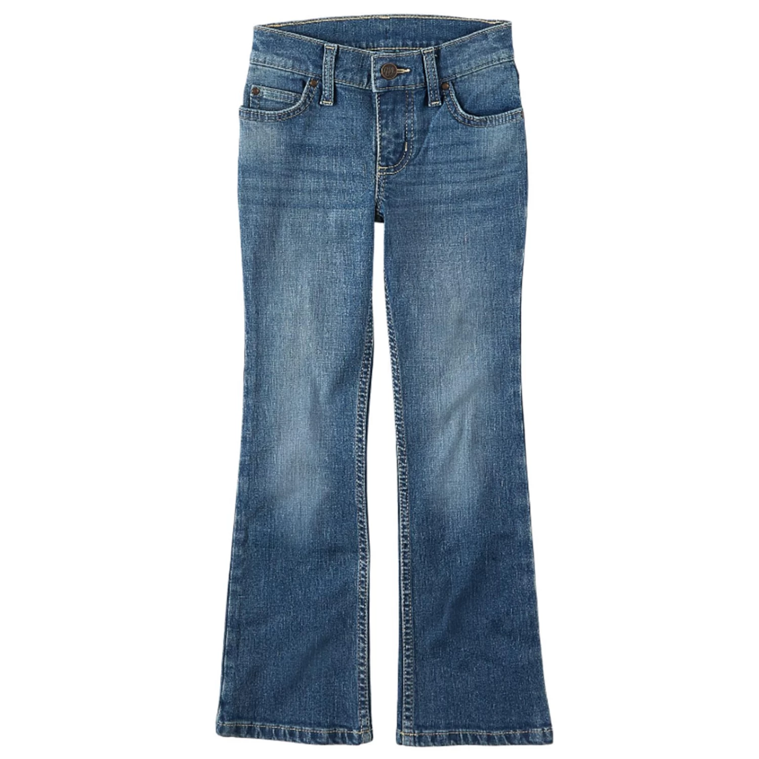 Wrangler Girls Jasmine Boot Cut Jean. This jean has a great wash and features the iconic Wrangler W pocket detail.Â